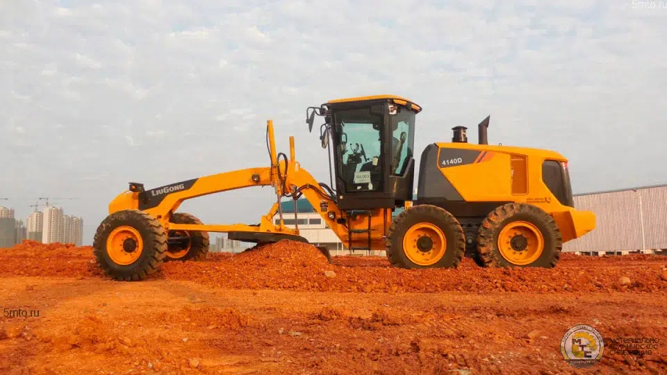 Автогрейдер оборудован поворотной платформой, что позволяет ему нивелировать боковые уклоны и откосы.