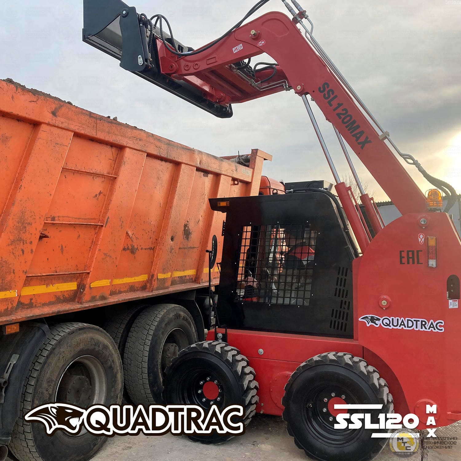 Мини погрузчик с бортовым поворотом QUADTRAC SSL120MAX имеет грузоподъемность 1150 кг и высоту подъема 3300мм, что позволяет выполнять широкий спектр задач. Отличительной особенностью данной модификации MAX является богатая комплектация, включающая в себя джойстики с сервоприводом, гидравлическую систему Hi Flow высокой мощности, кондиционер воздуха, челюстной ковш 4-1.