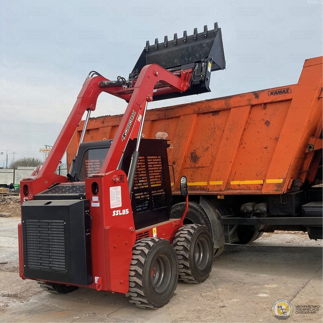 Благодаря прочной конструкции и оригинальному японском двигателю YANMAR мощностью 49 л.с., мини-погрузчик QUADTRAC может использоваться в тяжелых работах при ограниченном пространстве и на объектах любого формата. Грузоподъемность 850 кг и максимальная высота подъема 2985 мм., позволяет с легкостью использовать QUADTRAC SSL85 для загрузки практически любых самосвалов.