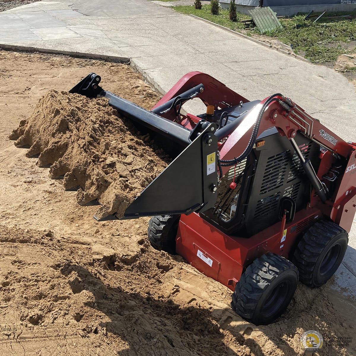 Благодаря наличию дополнительных гидролинии возможно использование любого навесного оборудования, такого как гидромолот, гидровращатель, ковш 4-1 , отвал, щетка и др.. Наличие универсального механического быстросъёма BOB-TACH облегчит и ускорит работу оператора. Мини-погрузчик QUADTRAC производятся только на экспорт, именно поэтому используются импортные комплектующие известных брендов (YANMAR, POCLAIN, DANFOSS), а технология испытаний и контроля качества перед выходом с завода мини-погрузчиков доведена до совершенства.