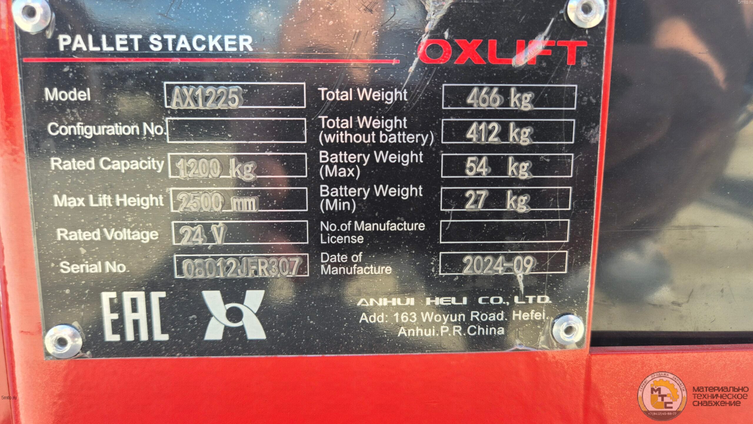 в течении 3-7 днейСамоходный штабелер OXLIFT AX12 1200/2500