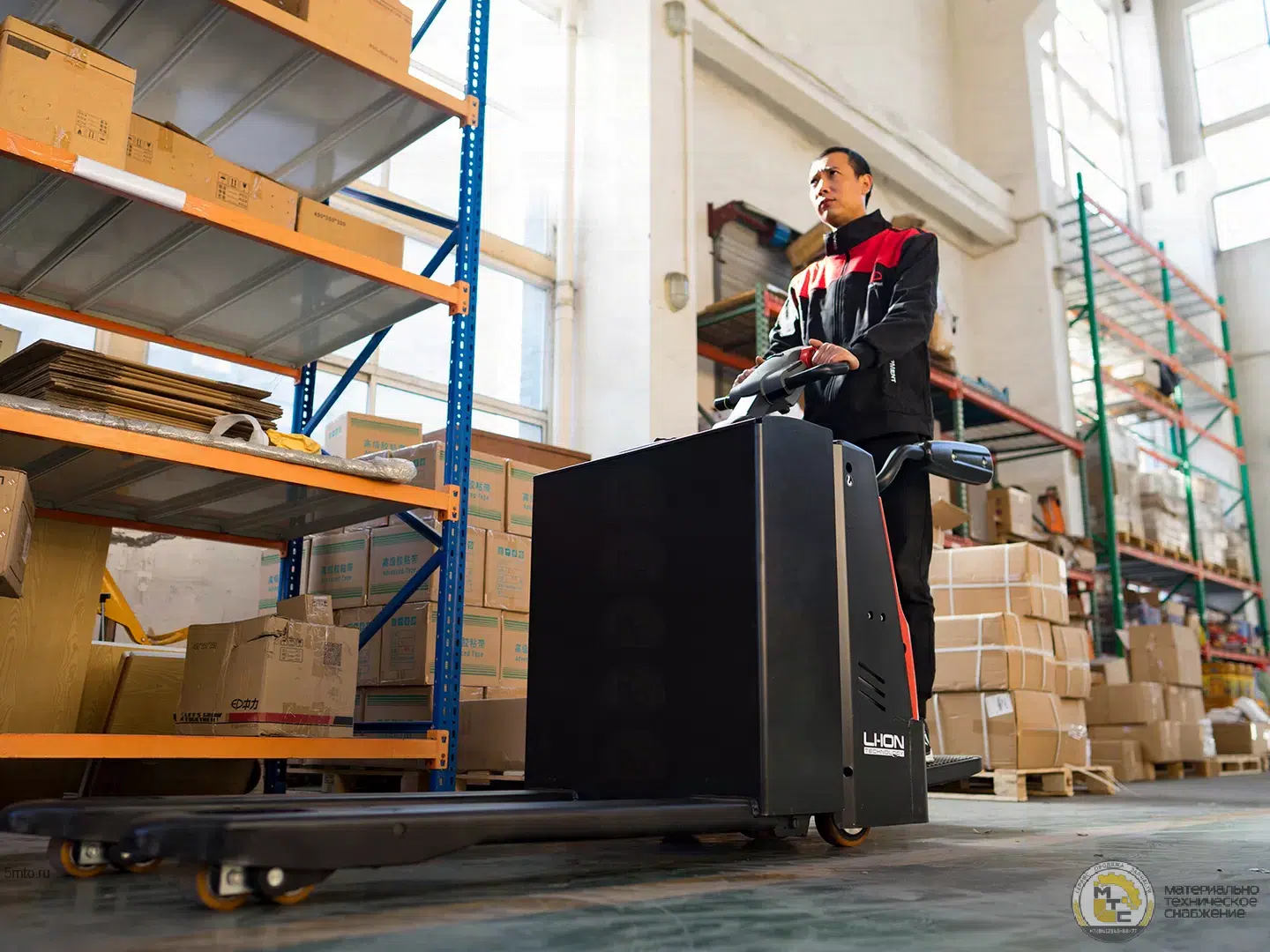 Складская техника (штабелеры, вилочные погрузчики) на небольшие расстояния доставляются эвакуатором – так и делаем, например, в радиусе 150 км от Москвы. Это не требует наличия пандуса и позволяет избежать затрат на выгрузку автокраном