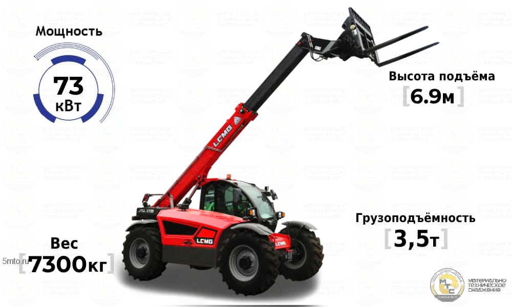 Полноприводный телескопический погрузчик LGMG НA 735 собирается на китайском заводе Lingong Heavy Machinery Co., Ltd. Одно из преимуществ данной модели — аксиально-поршневой насос рабочей гидравлики объёмом 45 куб. см (99л/мин), благодаря которому погрузчик может одновременно выполнять три движения: поднимать груз, выдвигать стрелу и работать кареткой, что сокращает время на погрузку и увеличивает производительность машины.