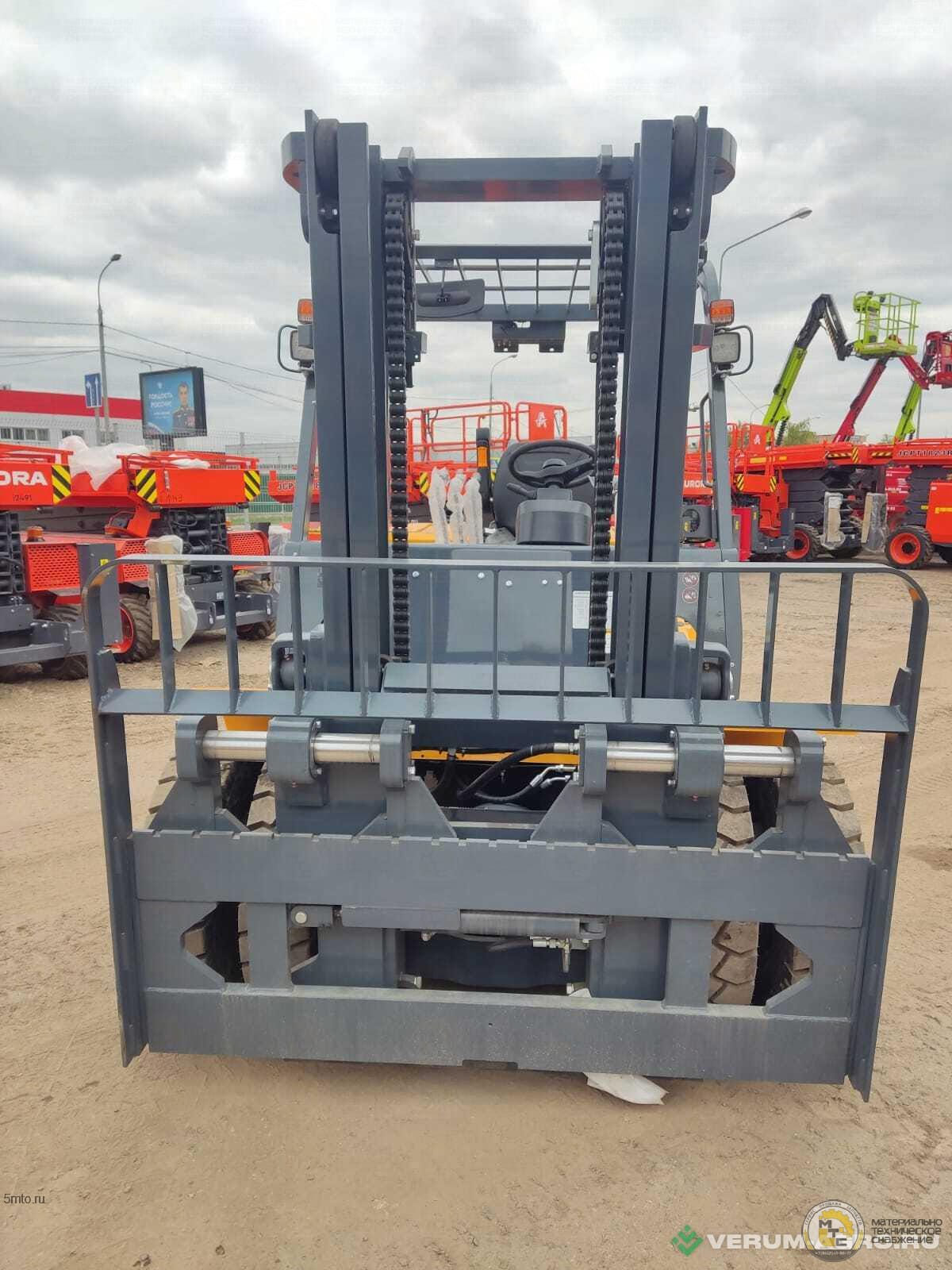 Это большой вилочный погрузчик 5тн со спаркой на передних колесах, стандартной мачтой и сайд-шифтером