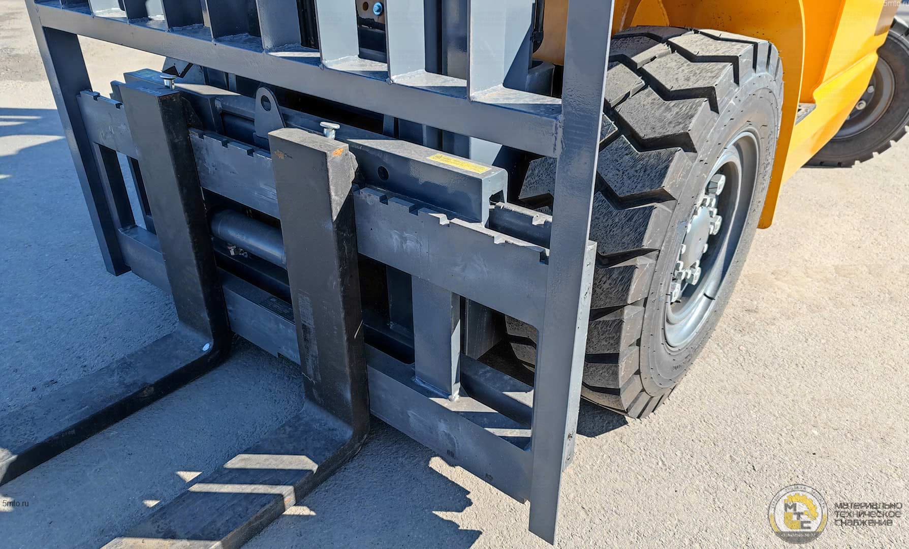 Данная машина имеет грузоподъемность 5,0тн, стандартную мачту с высотой подъема 3000мм, кабину с отопителем, сайд-шифт