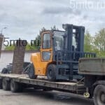 Складская техника (штабелеры, вилочные погрузчики) на небольшие расстояния доставляются эвакуатором – так и делаем, например, в радиусе 150 км от Москвы. Это не требует наличия пандуса и позволяет избежать затрат на выгрузку автокраном